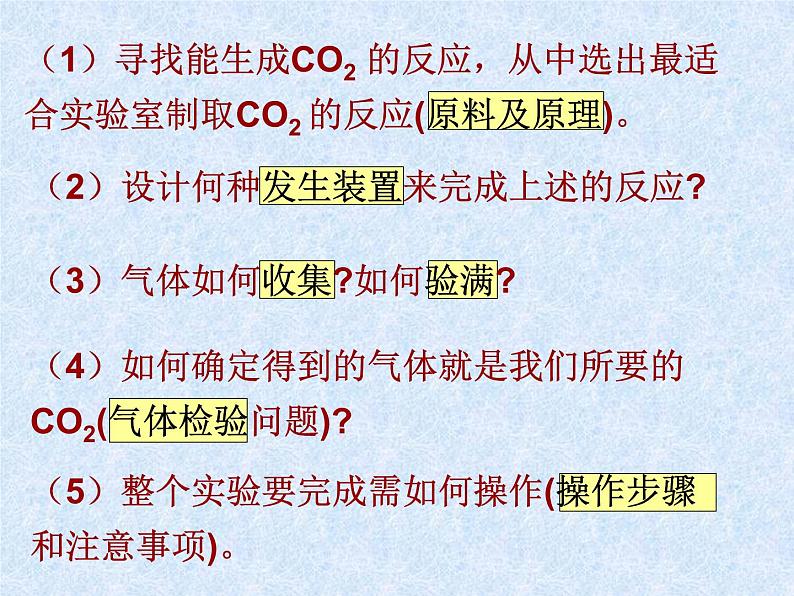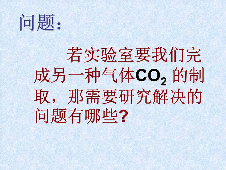 若实验室要我们完成另一种气体CO2 的制取,那需要研究解决的问题有哪些?