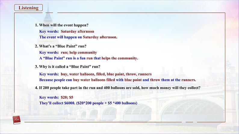 Key words: run; help communityA “Blue Paint” run is a fun run that helps the community.