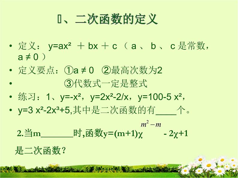 2.当m_______时,函数y=(m+1)χ - 2χ+1 是二次函数?