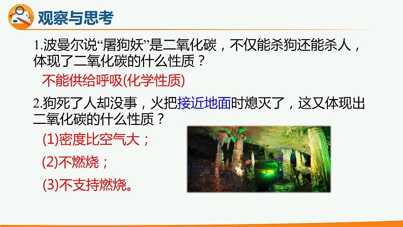 1.波曼尔说“屠狗妖”是二氧化碳,不仅能杀狗还能杀人,体现了二氧化碳的什么性质?