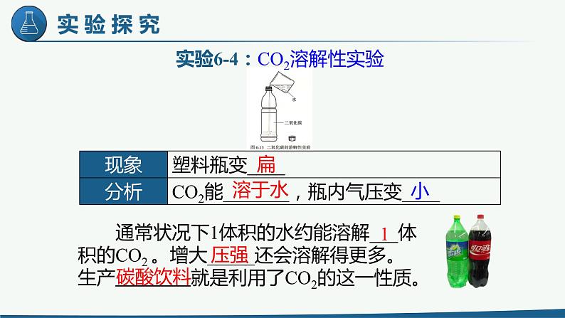 通常状况下1体积的水约能溶解___体积的CO2 。增大_____还会溶解得更多。生产 就是利用了CO2的这一性质。