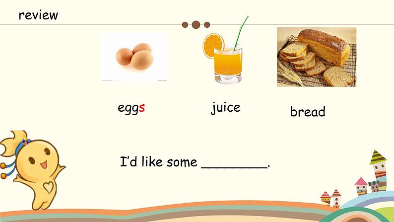 英语三年级上册Unit 3 Let’s paint Part A课堂教学ppt课件: 这是一份英语三年级上册Unit 3 Let’s paint Part A课堂教学ppt课件,共22页。PPT课件主要包含了Let’s sing,Thanks,bread,juice,eggs,egg,milk,Let’s do,Let’s say,Have some等内容,欢迎下载使用。