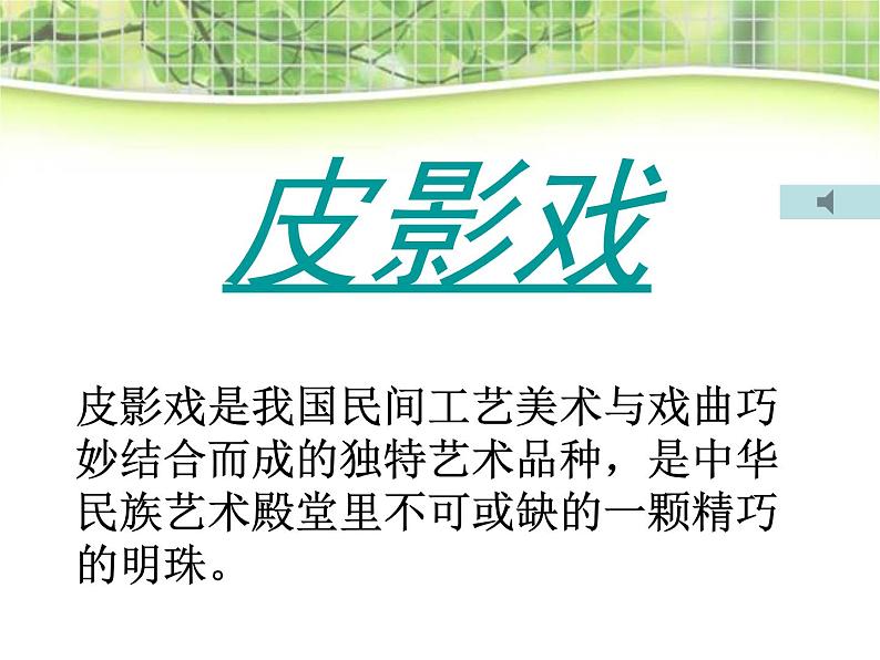皮影戏是我国民间工艺美术与戏曲巧妙结合而成的独特艺术品种,是中华民族艺术殿堂里不可或缺的一颗精巧的明珠。