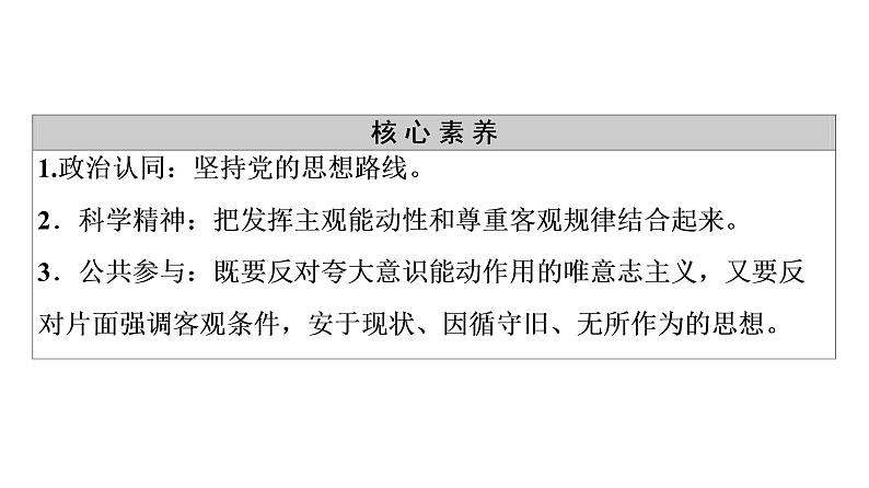 人教统编版必修4 哲学与文化运动的规律性课前预习课件ppt: 这是一份人教统编版必修4 哲学与文化运动的规律性课前预习课件ppt,共28页。PPT课件主要包含了议题一,议题二,知识脉络,随堂训练,思路解读,答案C等内容,欢迎下载使用。