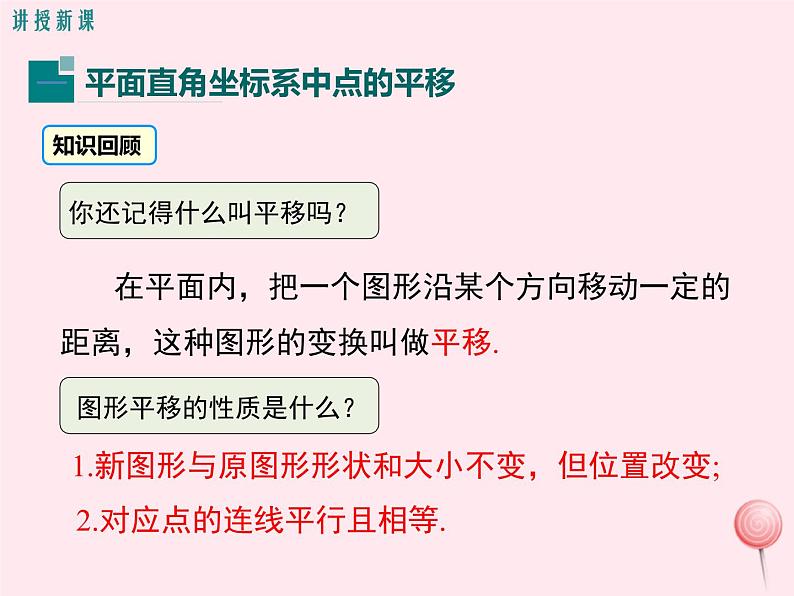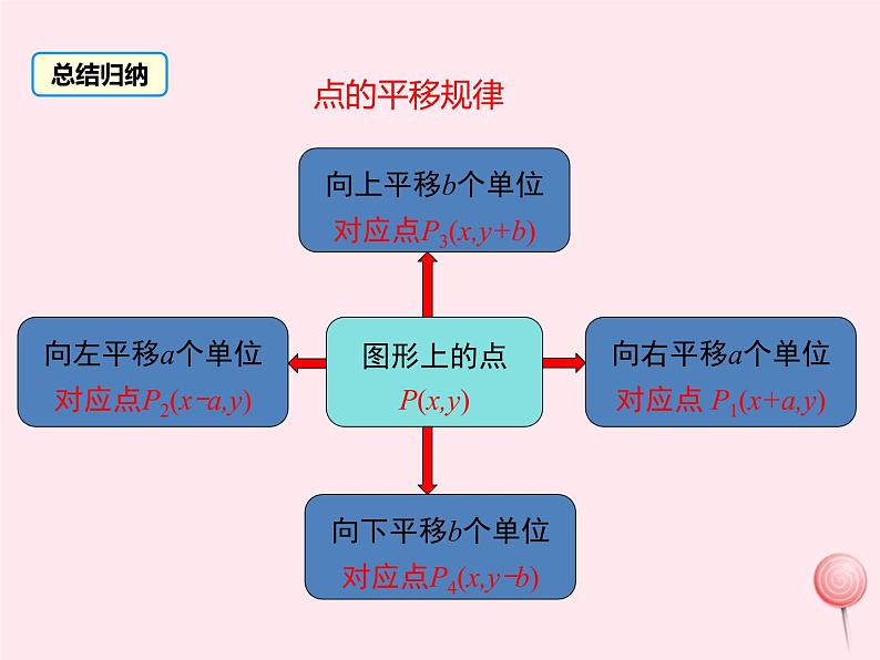 点的平移变换:左右移动改变点的横坐标,左减右 加;上下移动改变点的纵坐标,下减上加.