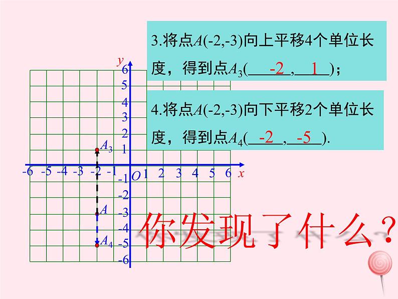 根据左图回答问题:1.将点A(-2,-3)向右平移5个单位长度,得到点A1( ___ , ___ );