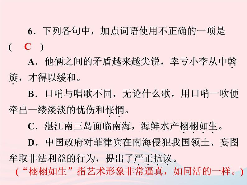 这是一份初中语文人教部编版八年级下册4*灯笼习题ppt课件,共49页。PPT课件主要包含了因争论而诉讼,调停调解,幽深寂静,熙熙然,马前卒,人情世故,一块碎石,组成不了雄壮的山川,一滴水珠等内容,欢迎下载使用。