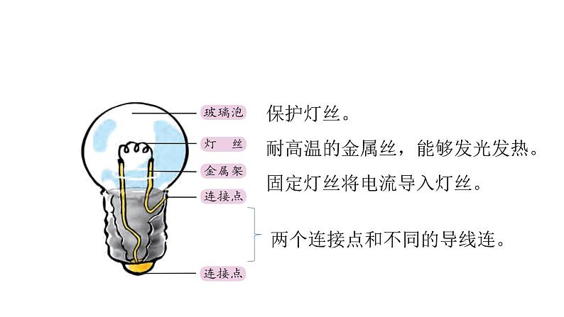 展开1.灯泡内部的结构?2.小灯泡的哪一部分会发光?3.小灯泡为什么会有两个连接点?