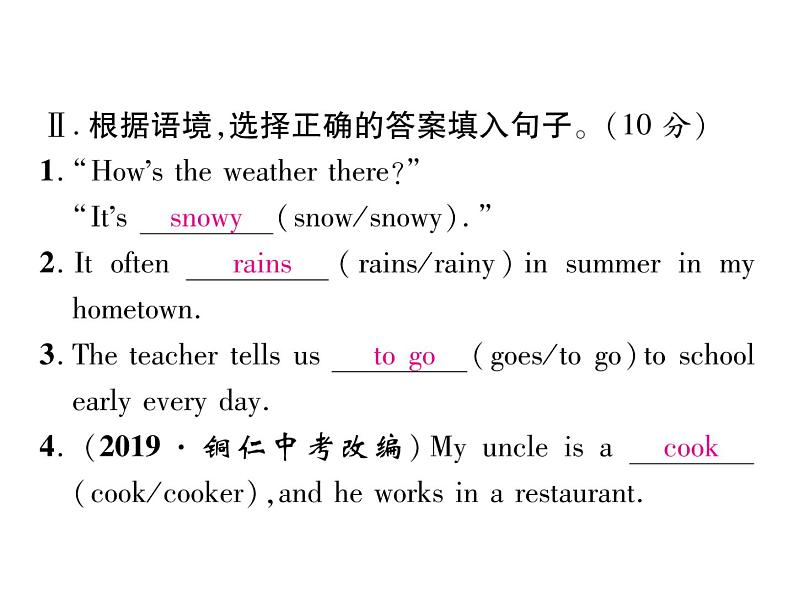这是一份初中英语人教新目标 (Go for it) 版七年级下册Unit 7 It’s raining!综合与测试习题ppt课件,