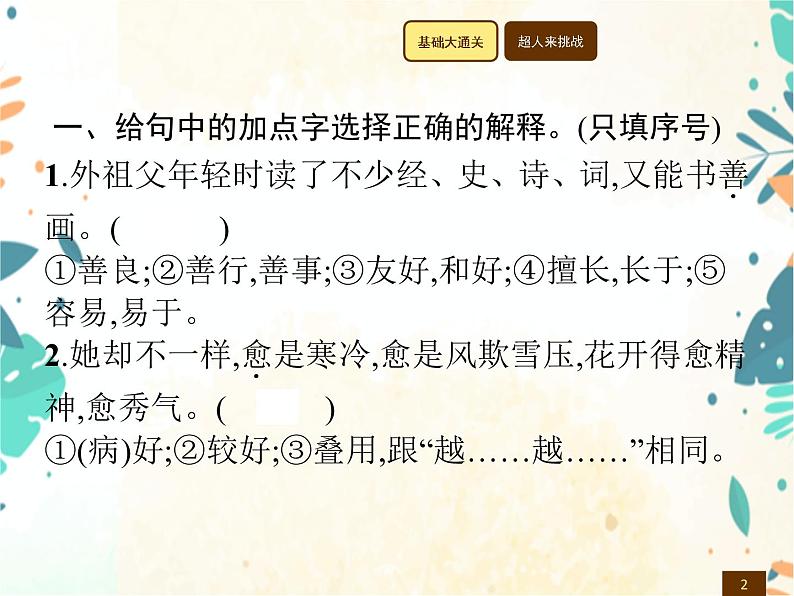 展开一、给句中的加点字选择正确的解释。(只填序号)