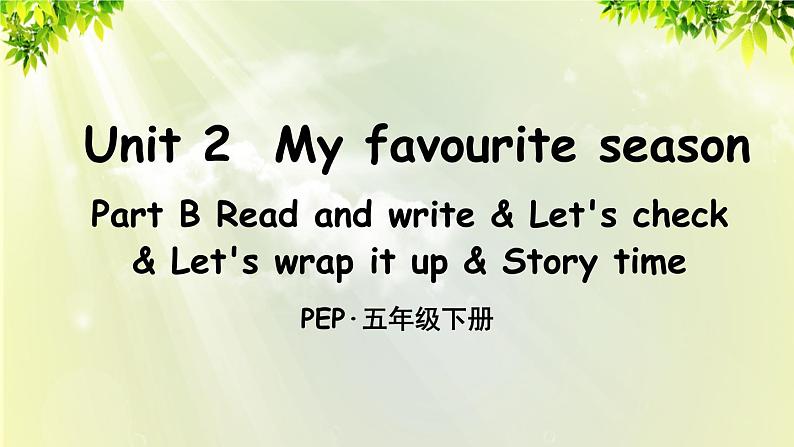 英语五年级下册Unit 2 My favourite season Part B教案配套课件ppt: 这是一份英语五年级下册Unit 2 My favourite season Part B教案配套课件ppt,文件包含U2第6课时BReadandwriteLetscheckLetswrapitupCStorytimepptx、BReadandwritewav、Listenandwritewav、Storytimewav、Storytimemp4等5份课件配套教学资源,其中PPT共42页, 欢迎下载使用。