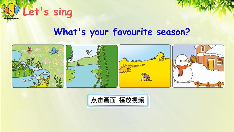 询问对方最喜欢哪个季节的句型及答语:—Which seasn d yu like best?—I like + 季节 + best. / 季节.