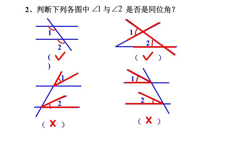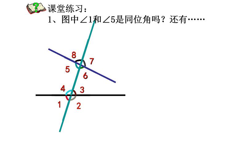 课堂练习:1、图中∠1和∠5是同位角吗?还有……