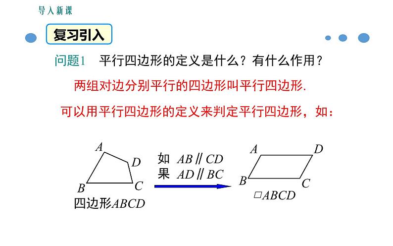 问题1 平行四边形的定义是什么?有什么作用?