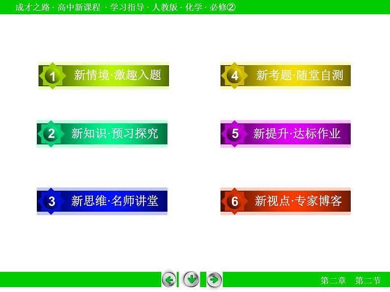 (6)原电池工作原理:原电池在工作时负极失去电子,电子通过导线流向正极,溶液中氧化性物质得到电子,发生还原反应,这样,氧化反应和还原反应不断发生,负极不断地失去电子,失去的电子不断地通过导线流向正极,被氧化性物质得到,这样闭合回路中不断有电子产生,也就形成了电流,于是,化学能就转变为电能。