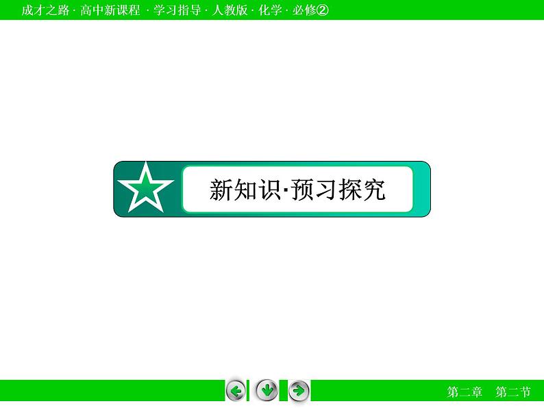 2.怎样判断一个原电池的正负极?怎样书写电极式?提示:①两极更易失电子一极为负极,另一极便为正极。②书写方法原电池反应所依托的化学反应原理是氧化还原反应,书写电极反应的方法归纳如下:(1)写出总化学反应方程式;(2)根据总化学反应方程式,按照电子得失情况,分成氧化反应和还原反应; (3)氧化反应在负极发生,还原反应在正极发生,注意介质参与的反应;总的化学反应式是正负电极反应相加的结果,反过来也可以相减,得电极反应,电极反应也遵守质量守恒,电荷守恒及正、负极得失电子数相等的规律。