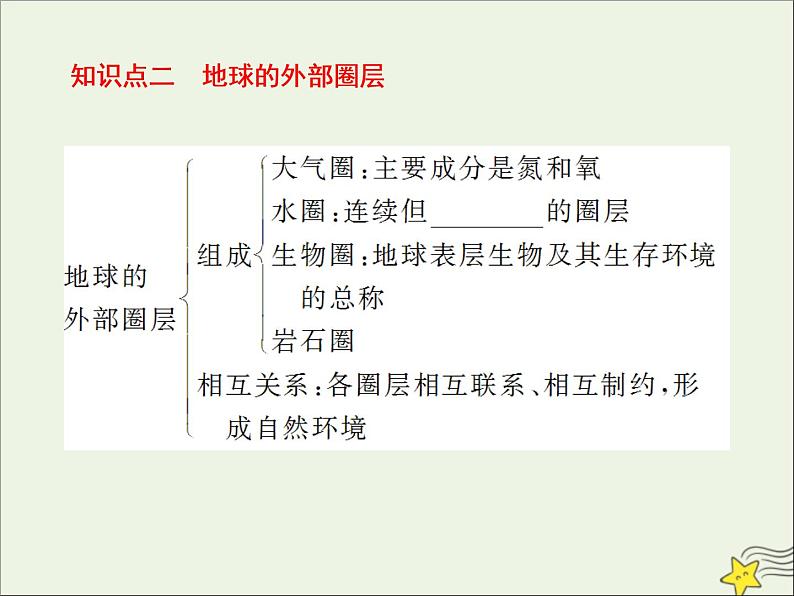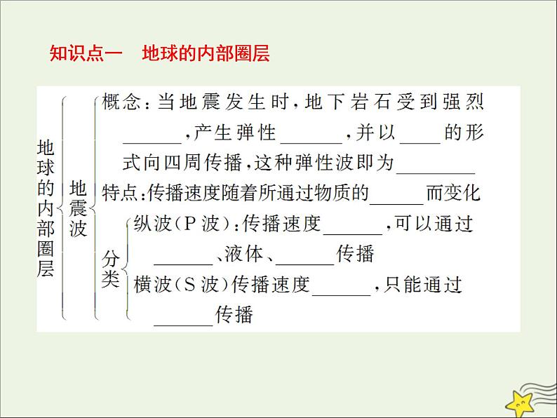 这是一份地理必修 第一册第四节 地球的圈层结构备课课件ppt,共25页。PPT课件主要包含了自学指导,古登堡界面,圈层划分,生物圈等内容,欢迎下载使用。