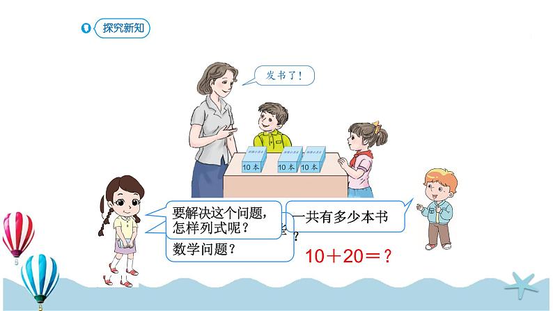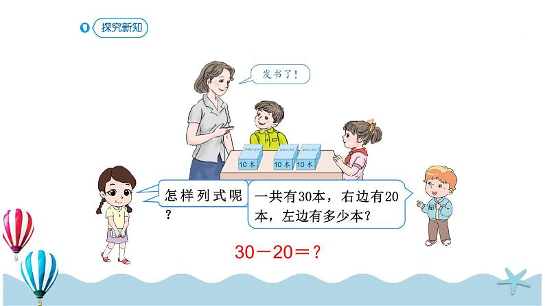 这是一份人教版一年级下册整十数加、减整十数精品ppt课件,共13页。PPT课件主要包含了发书了,+20=,想一想,-20=,看图列式计算,+2060,你能提什么问题等内容,欢迎下载使用。
