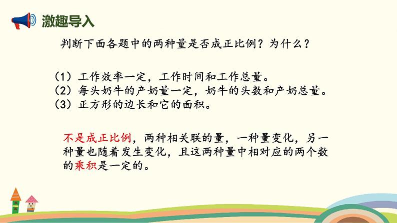 (1)工作效率一定,工作时间和工作总量。(2)每头奶牛的产奶量一定,奶牛的头数和产奶总量。(3)正方形的边长和它的面积。