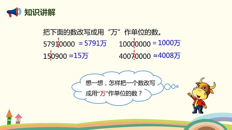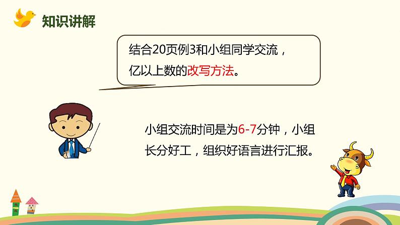 结合20页例3和小组同学交流,亿以上数的改写方法。