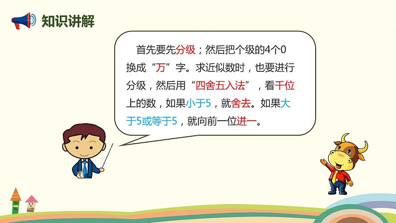 这是一份小学数学人教版四年级上册数的产生获奖课件ppt,共16页。PPT课件主要包含了激趣导入,知识讲解,三十亿九千万,七千零三亿零二十万,最高级,=5791万,=1000万,≈15万,≈4008万,10亿等内容,欢迎下载使用。