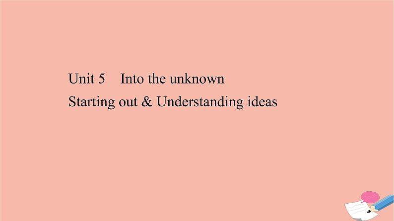 这是一份英语选择性必修 第四册Unit 5 Into the unknown示范课ppt课件,文件包含2020_2021学年新教材高中英语Unit5IntotheunknownDevelopingideas课件外研版选择性必修第四册ppt、2020_2021学年新教材高中英语Unit5IntotheunknownStartingoutUnderstandingideas课件外研版选择性必修第四册ppt、2020_2021学年新教材高中英语Unit5IntotheunknownUsinglanguage课件外研版选择性必修第四册ppt、2020_2021学年新教材高中英语Unit5Intotheunknown课件外研版选择性必修第四册ppt等4份课件配套教学资源,其中PPT共195页, 欢迎下载使用。