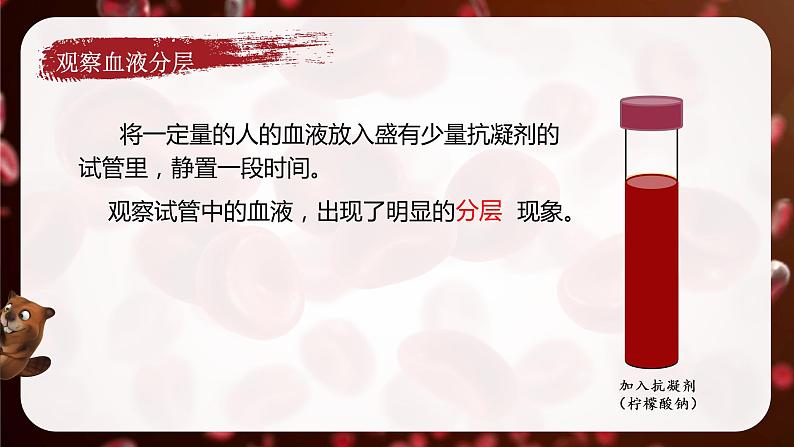观察试管中的血液,出现了明显的 现象。