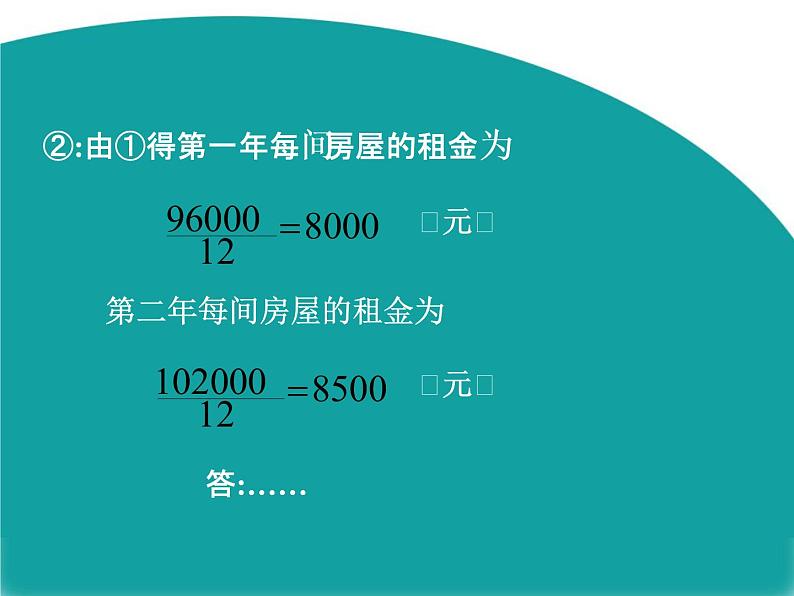①第二年每间房屋的租金- 第一年每间房屋的租金=500