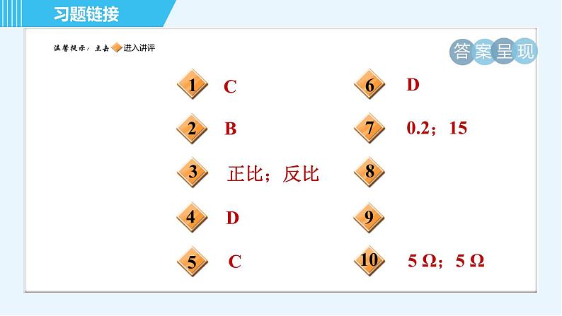 这是一份初中物理苏科版九年级全册3 欧姆定律多媒体教学ppt课件,共32页。PPT课件主要包含了正比反比,答案呈现,习题链接,Ω5Ω,1电源电压U等内容,欢迎下载使用。