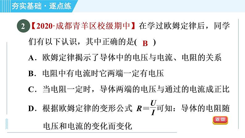 【点拨】导体的电阻是导体本身的一种属性,只与导体的长度、横截面积、材料和温度等因素有关,而与其他外界因素无关,因而电压为零时,导体的电阻依然存在,只是电路中的电流为零.