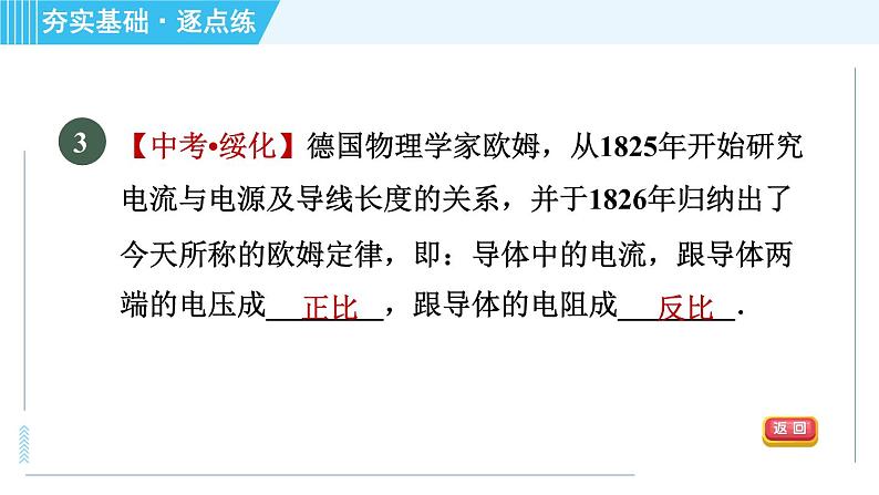 【中考•绥化】德国物理学家欧姆,从1825年开始研究电流与电源及导线长度的关系,并于1826年归纳出了今天所称的欧姆定律,即:导体中的电流,跟导体两端的电压成________,跟导体的电阻成________.