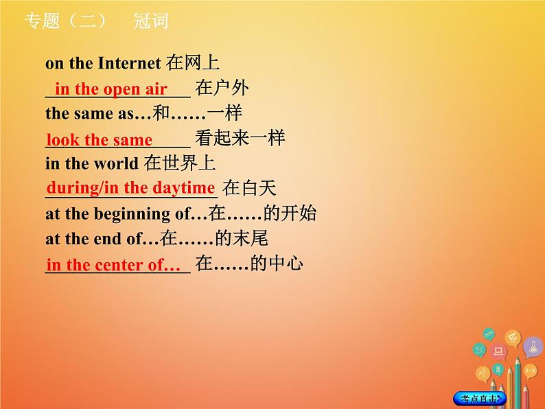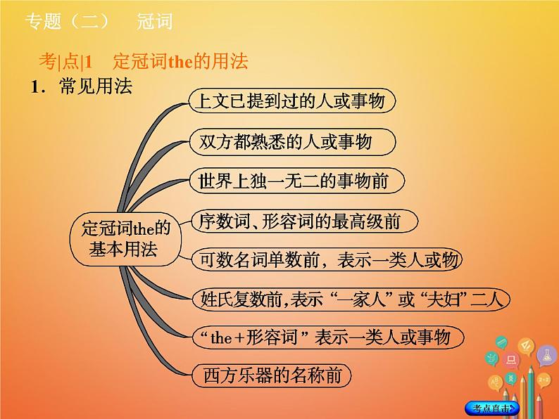 湖南省2018年中考英语总复习第二部分语法点击专题(二)冠词课件人教新目标版