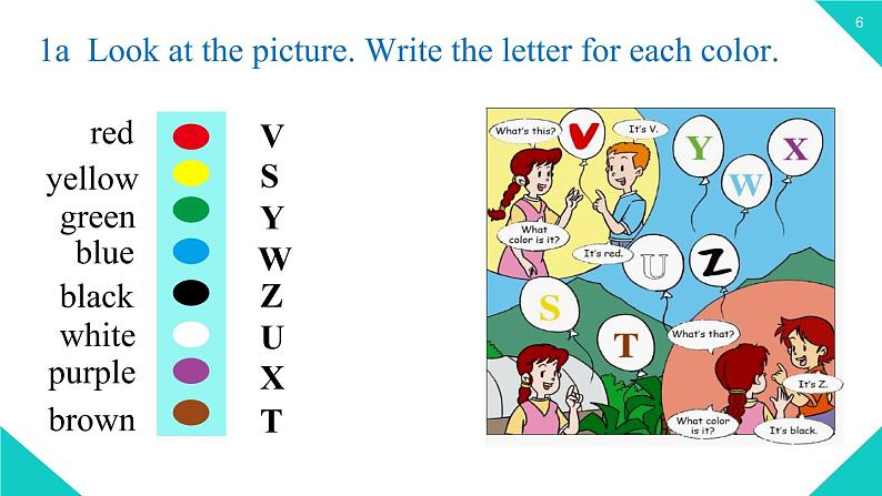 Ask and answer: —What clr is it? —It’s…—What clr are they? —They’re...