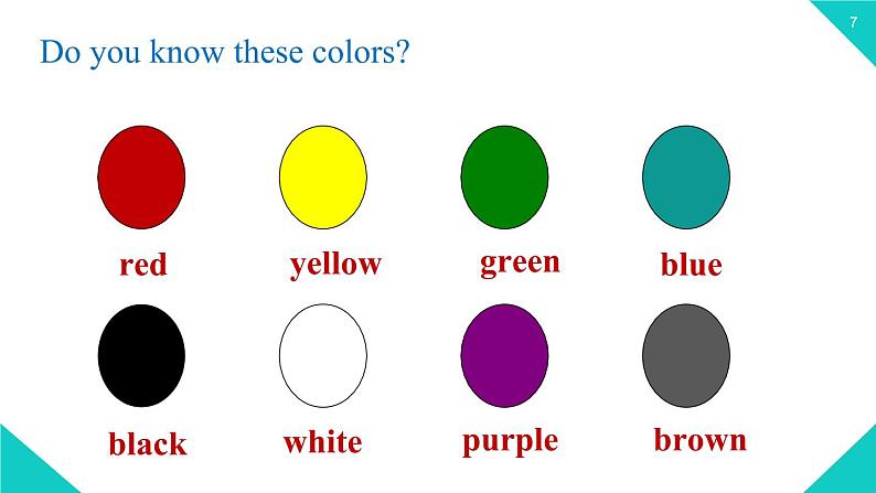 ① —What clr is it? —It’s black.② —What clr are they? —They’re yellw.