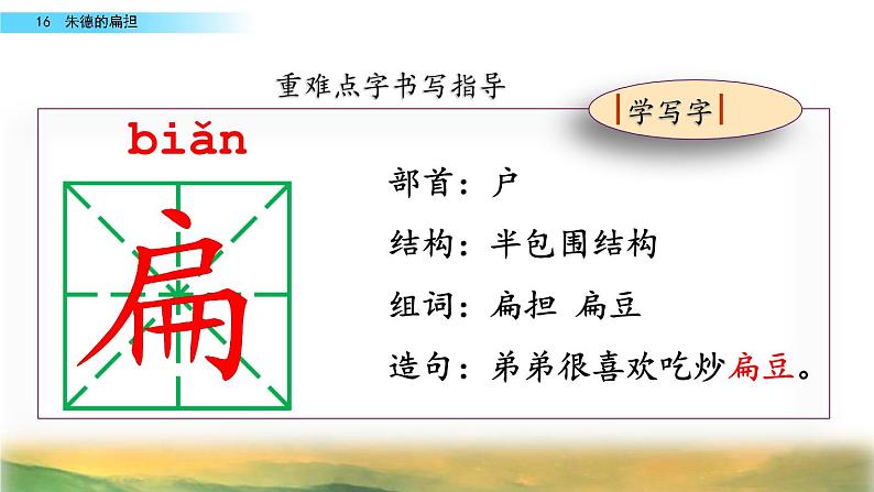 这是一份小学语文人教部编版二年级上册16 朱德的扁担教学课件ppt,共1页。