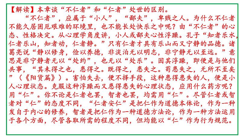 高考语文一轮复习课件 论语解读——里仁篇第四(26讲仁之义)